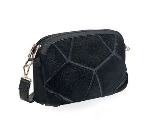 Image Name: Black Faux Pony Skin Shoulder Bag